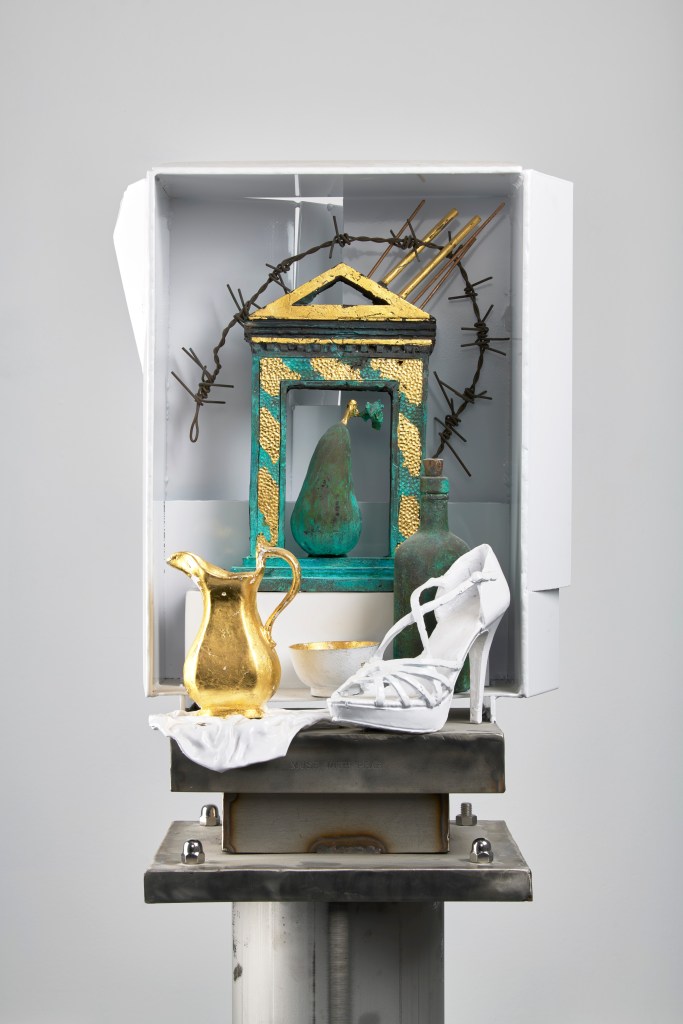 Adjacent to or underneath the bowls I have placed a cloth of gold. Around these I have placed objects which suggest the personality of the muse, or their character, background or outlook. In a sense these are portraits.