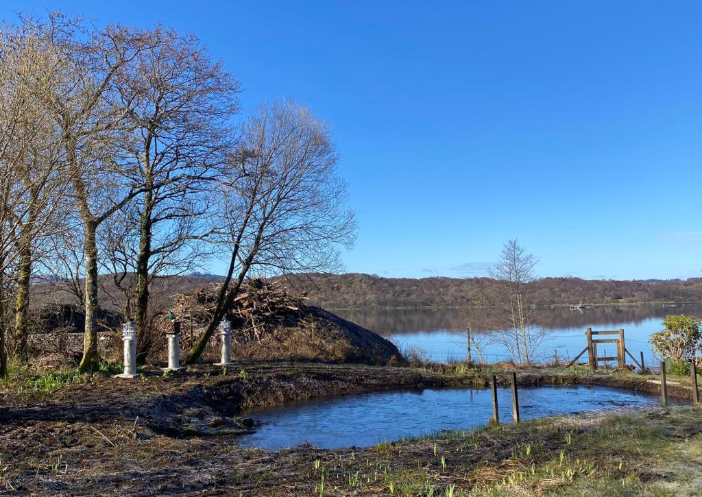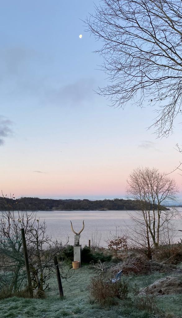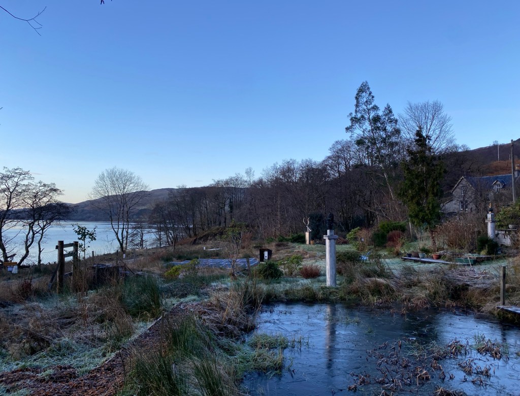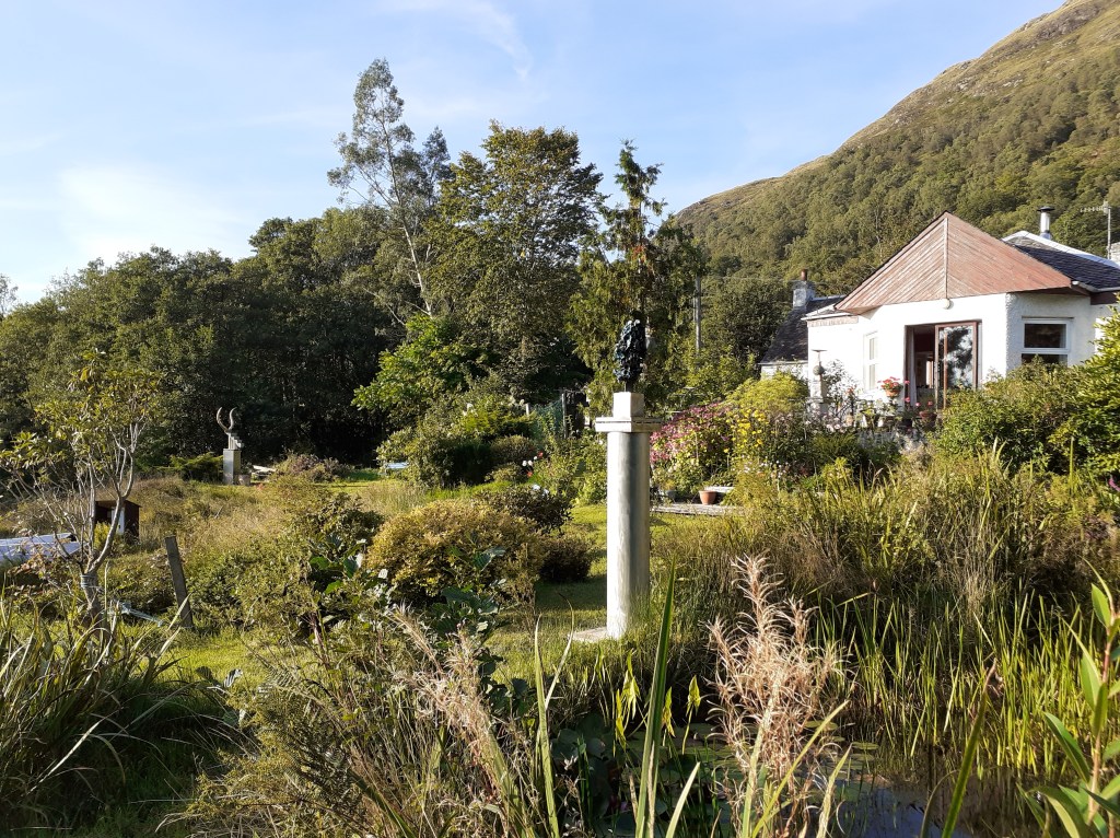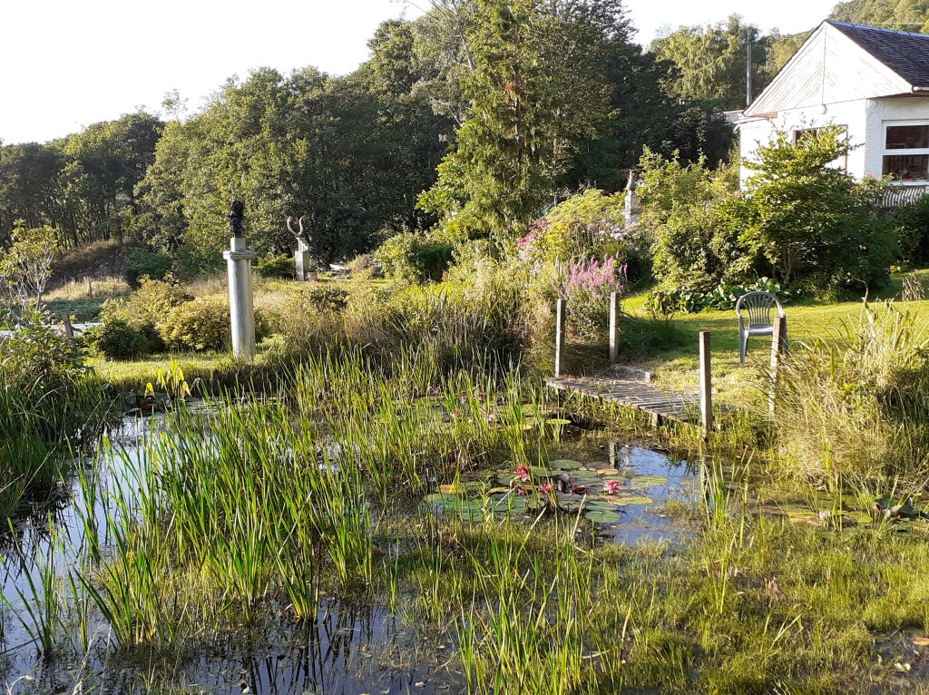 The garden is a mixed of untouched nature and sensitive and appropriate planting. The garden is regularly visited by pine martins, otters, all manner of birds. There are newts, frogs, dragonfly larvae in the pond and adders in the undergrowth. Until the construction of a gate and fence the deer regularly visited the garden.