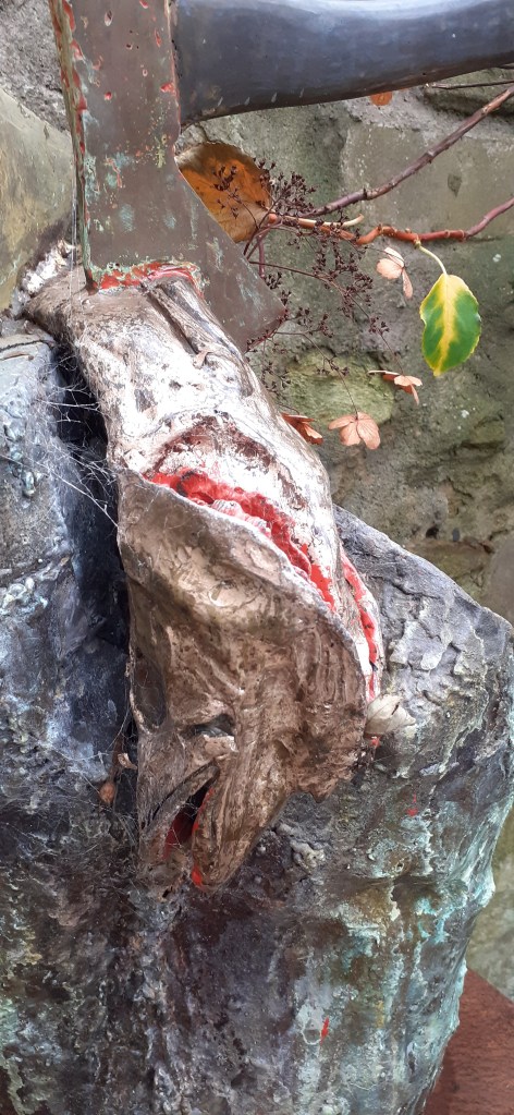 One of the strange things about locating sculpture in a natural setting is that Nature simply does not comprehend the human meaning of a sculpture. For a robin a sculpture is simply a perch, for a fox a marking post, for ivy something to climb and so on. And that is maybe how things should be. Perhaps the clamour for meaning that underlines a sculptor’s creative life achieves a modicum of wisdom when it is faced with with themes that the natural world throws up. Perhaps the way that light and shade move accross a piece is more important than a sculptor’s motives. And almost certainly how a sculpture is repurposed and reclaimed by nature.