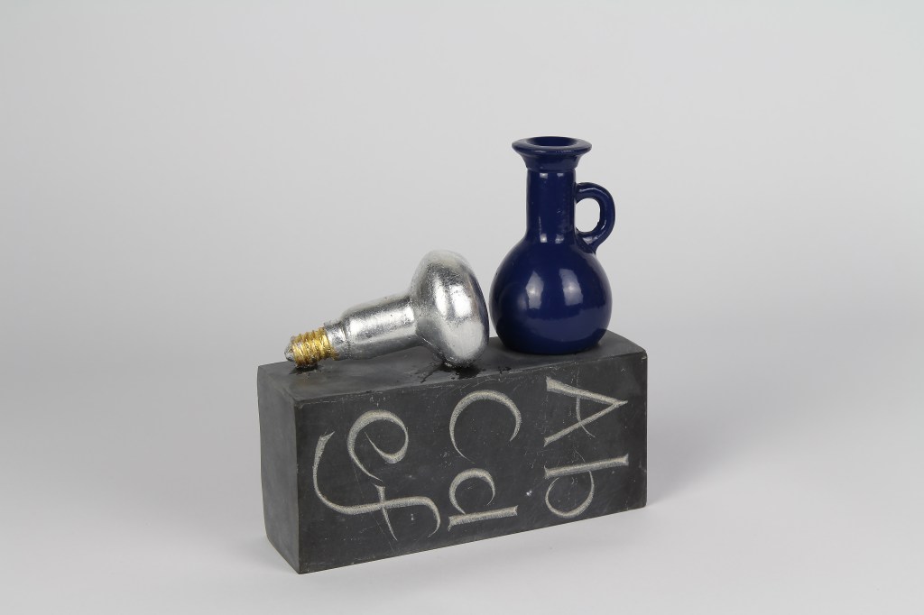 Bronze, stainless steel, glass, lapis lazuli